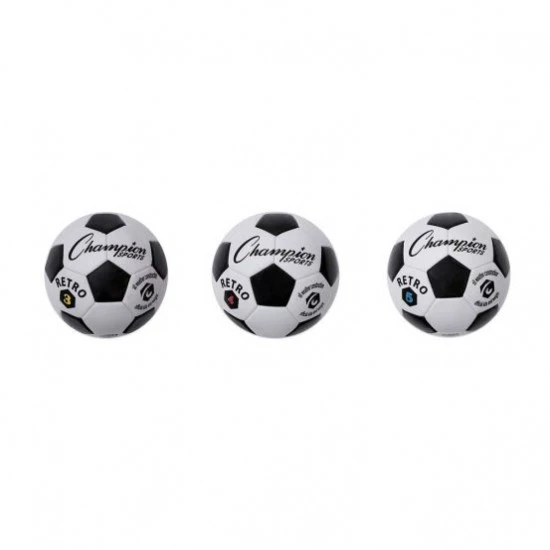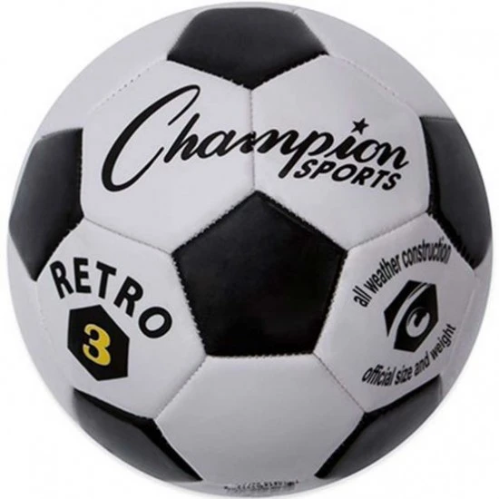 The Retro black & white soccer ball from Champion is great for all ages with a classic old school look. This soccer ball is available in size 3 for ages 8 and under and available in size 4 and 5 for ages 12 and older. This Champion soccer ball is great for club practices and gym classes as it is an all-weather ball that will stand up to wet conditions.