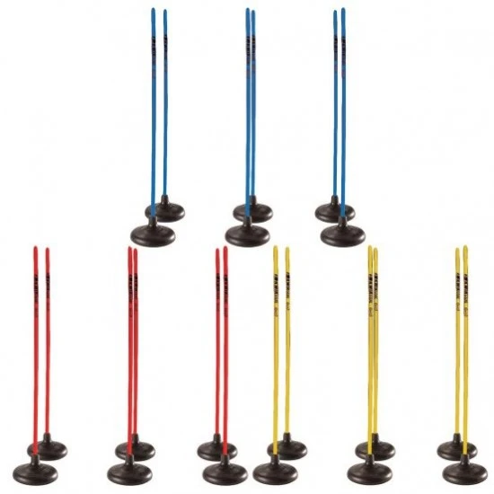 Kwik Goal Premier Coaching Sticks feature high-density rubber bases that provide unmatched stability on any surface. The set of 6 durable uprights are 60’H x 1″.