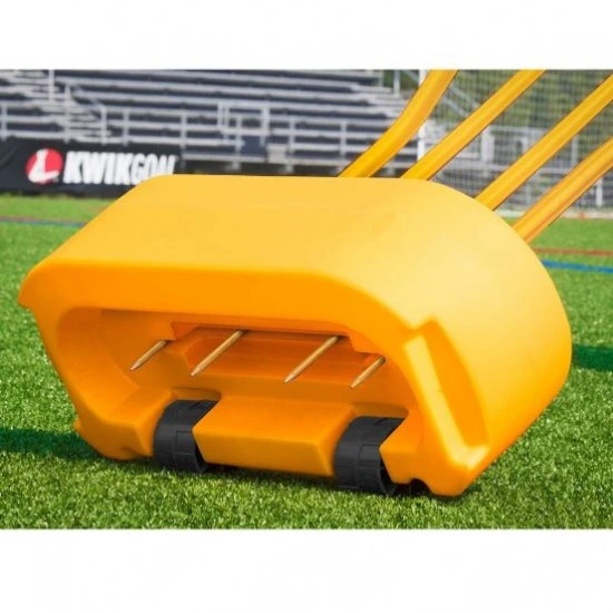 Kwik Goal all-surface friendly TOM Bases wheel for portability and add great versatility to your Kwik Goal TOM Training Opponent Mannequins. This plastic TOM base can be filled with sand or water with a maximum fill weight of 50 lbs. Each base holds one TOM mannequin or up to eight 1″ diameter coaching sticks at varying heights and angles. The TOM Base also includes carry grips to make moving it around fast and easy!